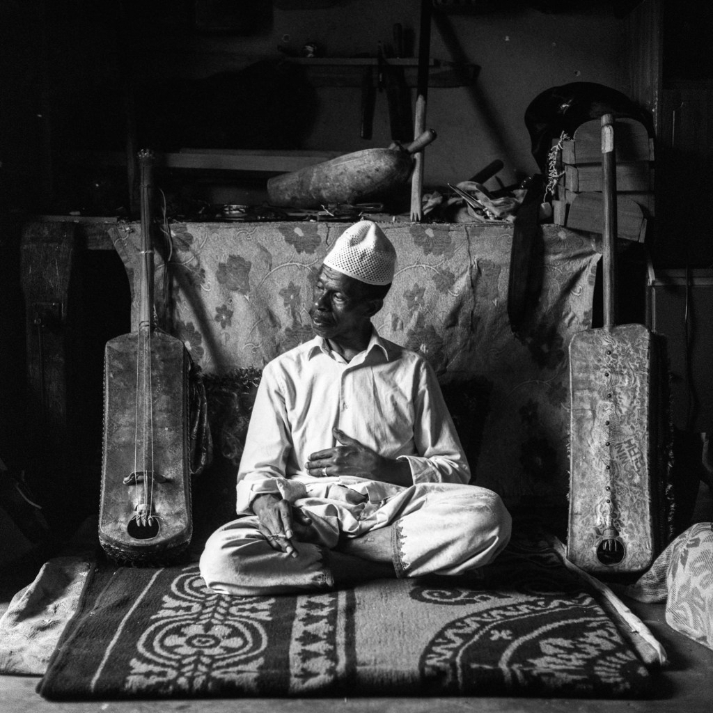 Mâalem Boulkheir El Gourd – Tanger, Mai 2022Il fait bon dans la médina de Tanger en ce mois de mai et, en quelques mots, le mâalem Boulkheir vient, sans le savoir, de donner leur orientation à mes recherches. À Dar Gnawa, lieu de vie et de mémoire de la communauté gnaouia tangéroise, le maître musicien internationalement reconnu accepte de répondre à mes questions. Et, quand les mots s’épuisent, nous nous lançons dans quelques improvisations, lui au guembri, luth à trois cordes des Gnaoua, moi à la guitare. Quand je l’interroge sur la dimension symbolique de son instrument, il me répond qu’il représente le bateau qui, des siècles plus tôt, a arraché ses frères à l’Afrique pour les emmener vers les Amériques, et que leur chant vibre désormais par les cordes de ce luth sacré.